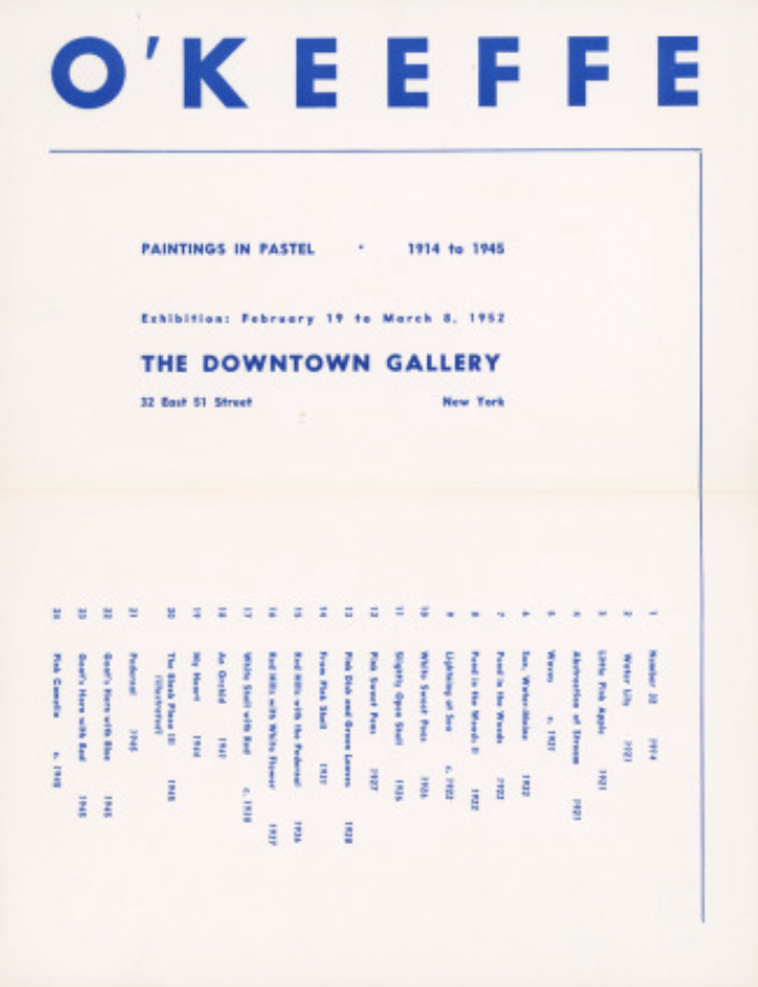 View CollectionHistoric Exhibitions includes exhibitions in which the art of Georgia O'Keeffe was featured. Exhibitions present the artworks included in the checklists and other related archival documentation when available. This section is a work in progress currently representing checklists from 1916-1950 as well as selected recent exhibitions.